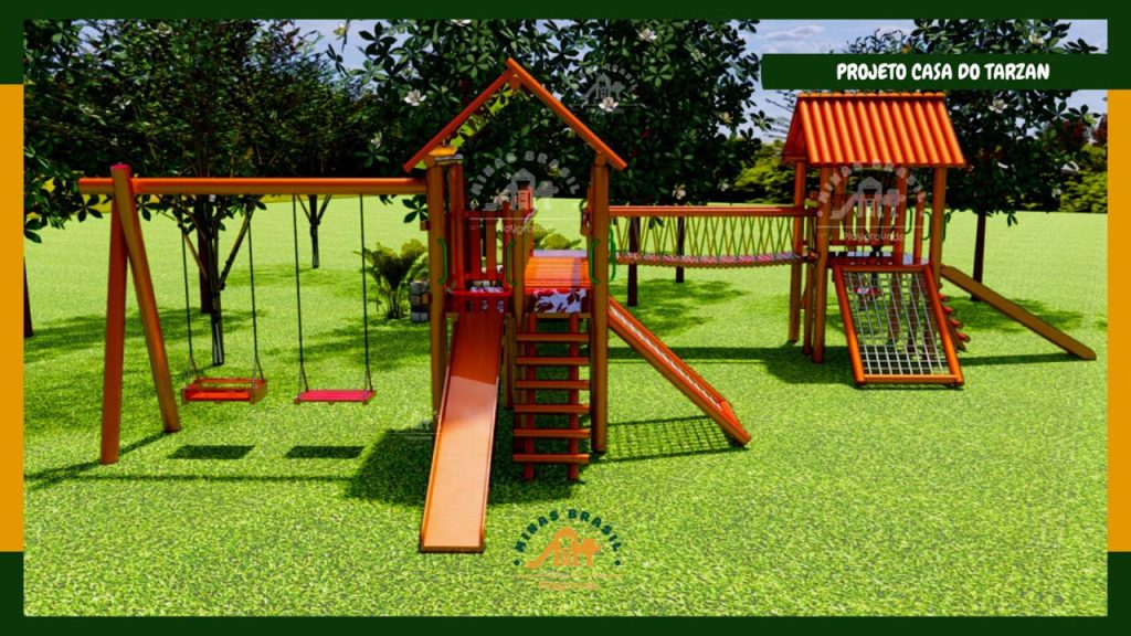 • Pintura Stain com tripla proteção solar + verniz premium; MINAS BRASIL PLAYGROUNDS – Área do PlaygroundFeito em Eucalipto Tratado em Autoclave, com sustentação em pernas cruzadas, com 2 assentos (sendo 1 assento prancha comum e 1 cadeirinha baby).