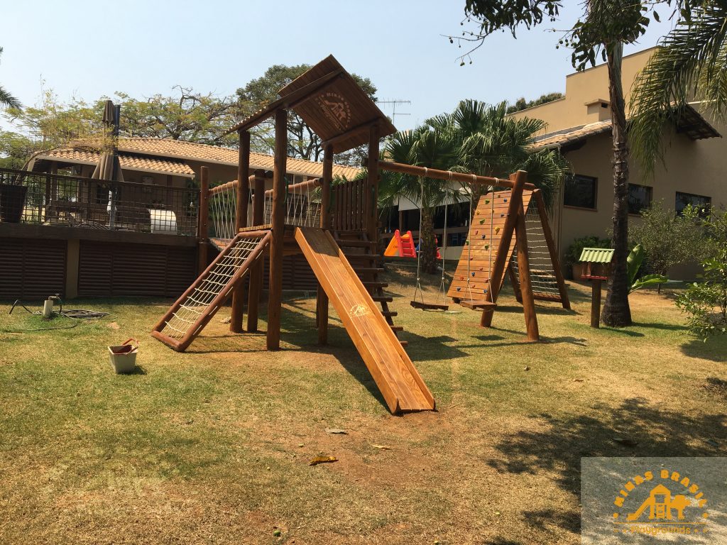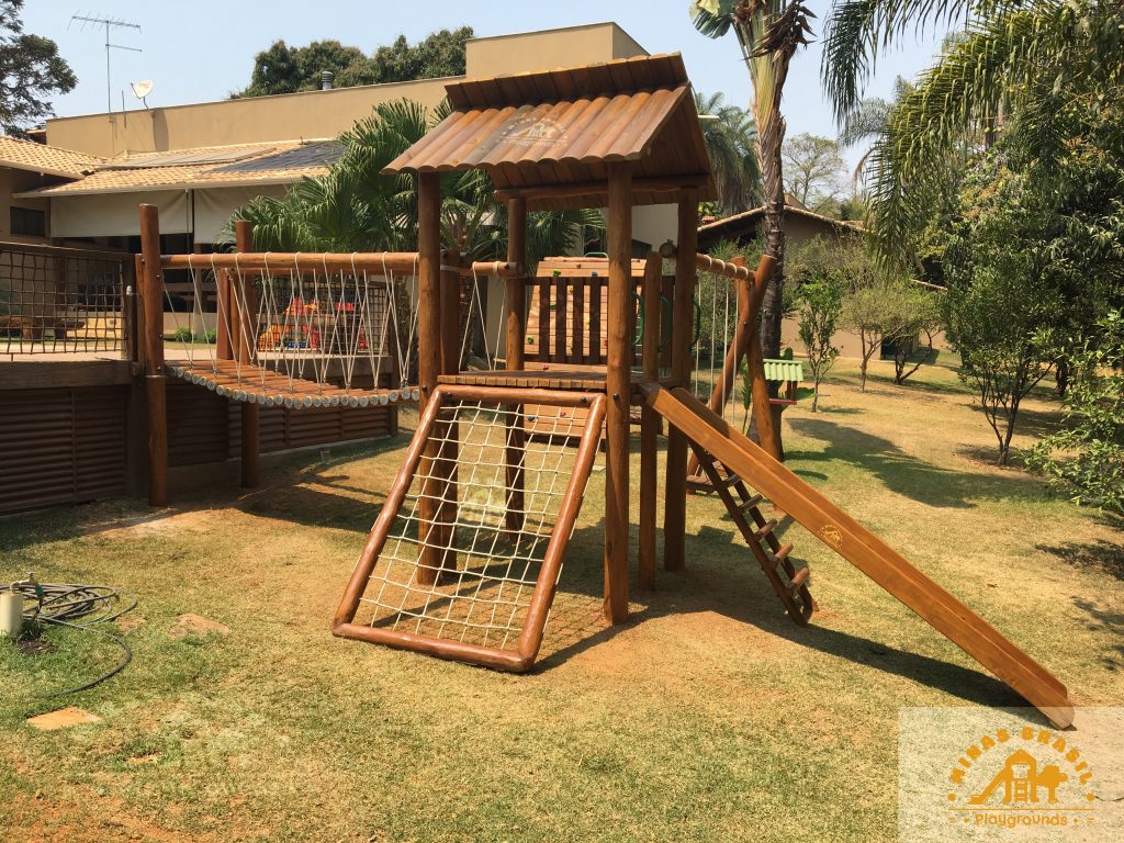 Playground feito com toras de Eucalipto tratado e acabamento no estilo russo nas